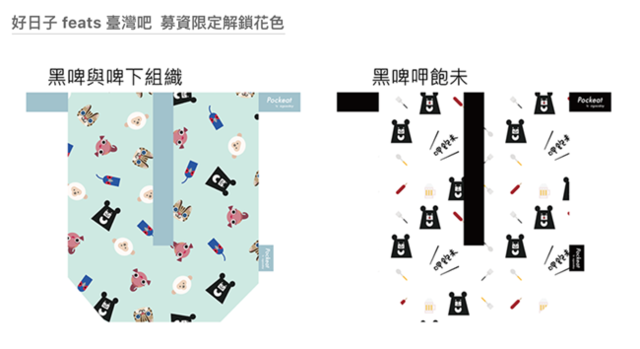 更由於專案一上線便引來熱烈迴響贊助,近日他們解鎖了與臺灣吧合作的兩款限定花色:「黑啤與啤下組織」、「黑啤呷飽未」。
