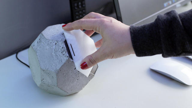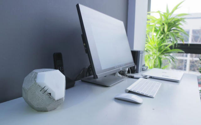 THERO 的外觀看起來就像是「重量級」雕刻擺件,以 3D 立體列印出來,能夠與包括混凝土、木頭等材質混合,放在電腦旁,卻如大神般的守護者,隨時守護著大家的網路隱私。