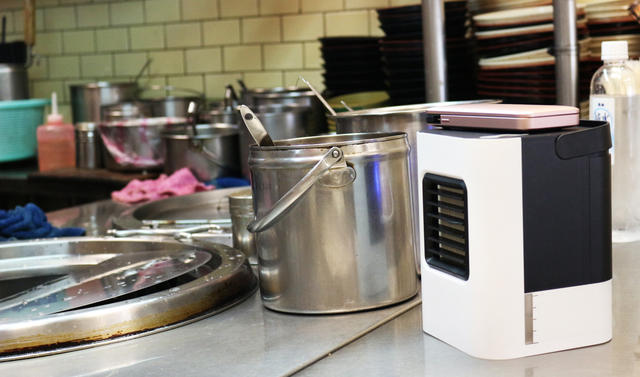 時常在高溫環境工作的攤販,恰恰適合用微型冷氣的涼風降低煩躁感!