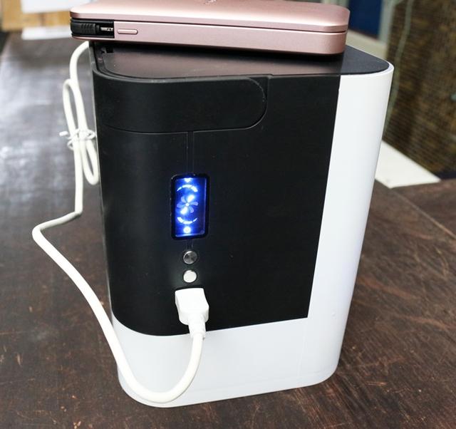 機體上有著 5V2A micro USB 插口,可連結 USB 線(圖內行動電源非當事行動電源,本次活動銷售搭配的是另一顆)