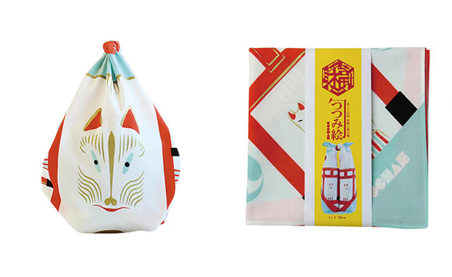 風呂敷是從前日本用來搬運或收納物品的包袱布,最早可能是拿來放洗澡時換下來的衣物,近幾年,因為環保意識抬頭,風呂敷再次流行。由設計搭檔 Yosuke Jikuhara 及 Miki Takeda 組成的 Cochae,以稻荷神的使者「狐狸」為主視覺,攤開時為充滿狐狸花紋的布料,包裹起來後,每個角度都有不一樣的狐狸面貌,是參拜神社時的最搭包款。