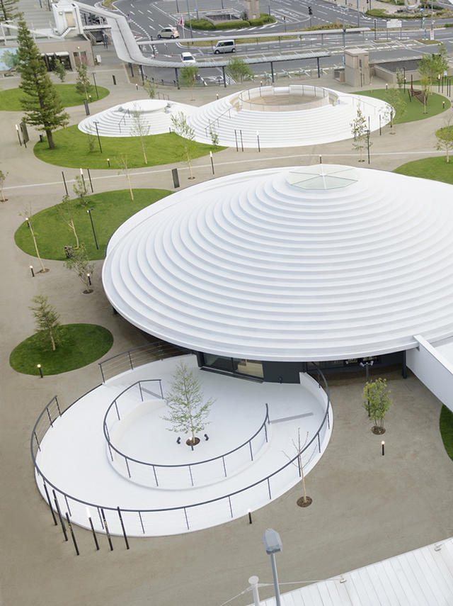 獨特的空間造型設計,從空中鳥瞰就像是都市叢林裡冒出了一座麥田圈,或像是白色飛碟的停碟場(?)XD