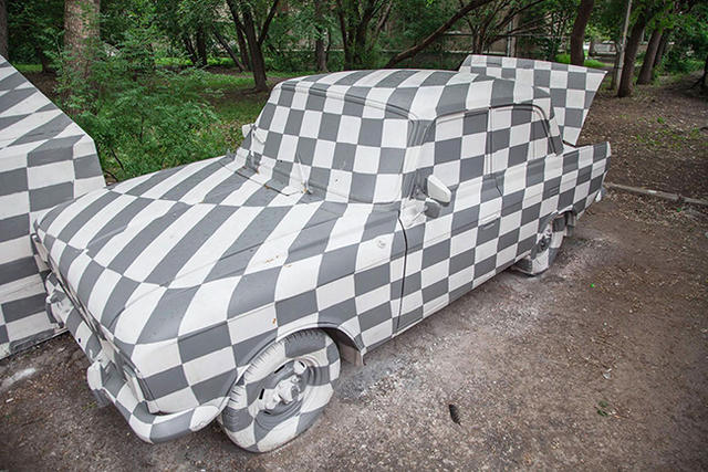 由藝術家 Andrey Kolokolov、Taisia Spirina、Alex-t、Max Parfenov、Dmitry Chabanov、Constantine Rakhmanov 和 Anna Klec 共同完成的惡趣味作品,在取得車子和車庫主人的同意後,將它們從車頭燈、輪胎到底漆,全都漆成如 Photoshop 透明圖層的黑白方格。