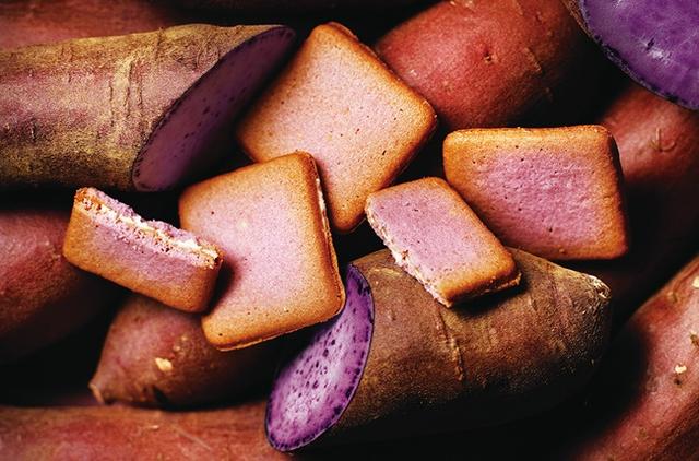 加入帕瑪森起司烤出的薄脆餅乾內有著紅芋奶油內餡,連包裝都刻意設計成亮眼的紫色系,不知道如何選擇的話買定番口味就對了。