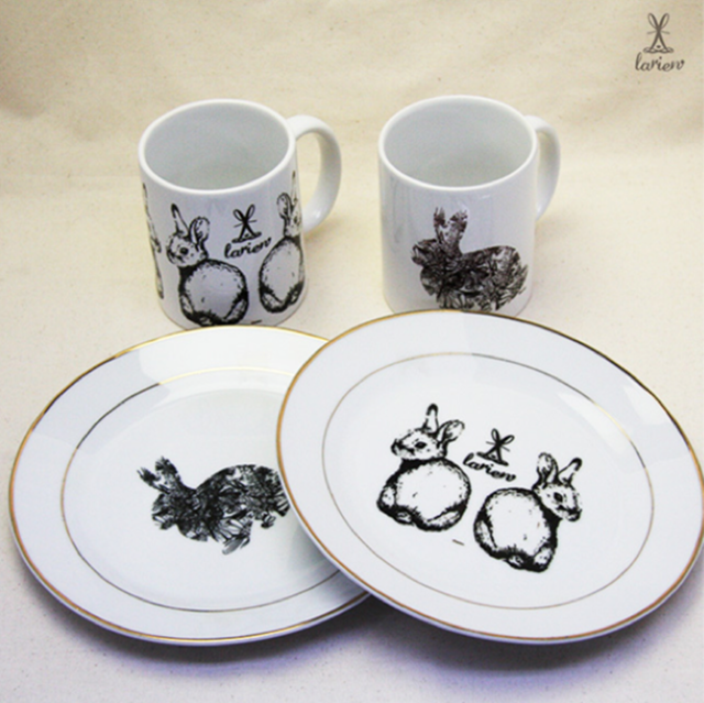 一款為獨行俠兔子的素描意象風,另一款為雙胞胎兔的手繪寫實風,兩款皆鑲上金邊,相當有質感,覺得拿來使用太可惜的話,也可以像外國人家中一樣拿來當擺設喔!