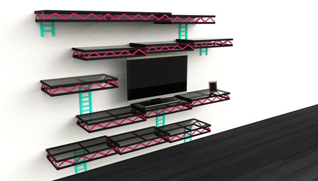 Donkey Kong Wall 顧名思義,即以大金剛遊戲中經典爬梯場設計成的造型櫃,所有櫃架以帶點不規則感呈現。