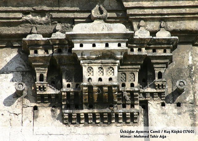 在土耳其,鄂圖曼建築的重要元素之一,就是附著在建築外牆上的鳥屋,在清真寺、客棧、橋樑、圖書館、學校、噴泉的外觀上,都可以看到這種專門為鳥類打造的小小安全之所。雖然鳥屋中住的不是人,而是鳥,建築師對於鳥屋的設計仍然十分用心,會配合原本建築的風格,把鳥屋當成迷你住宅打造,從一層樓的平房,到兩層樓的豪宅都有,而不只是簡單的水泥結構。
