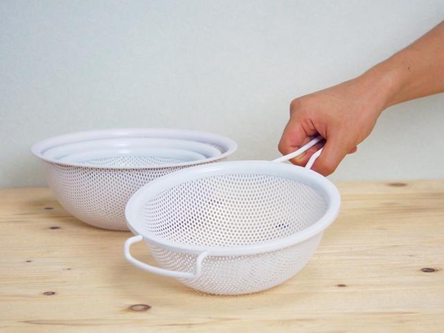 原本就不常見的白色不銹鋼盆與濾網,經特別加工後就算是白色也不易弄髒,將素麵沖涼後就連著濾網一起上桌似乎也很 OK,因白色而讓整體都時髦了起來。