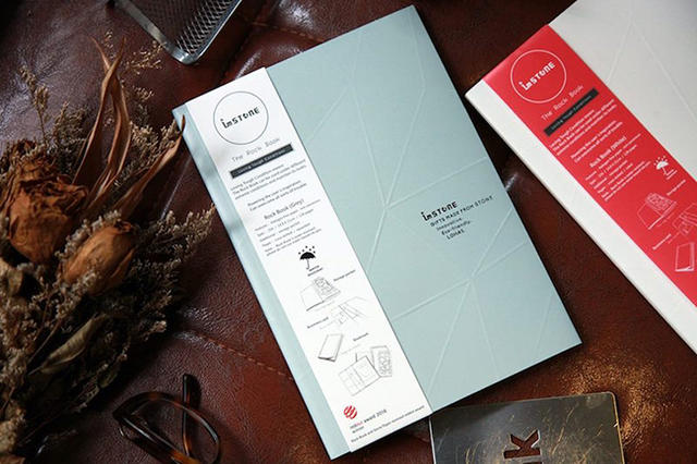 開發出獲得 40 個國家專利證明,也符合歐盟環保檢測的石頭紙的團隊,為來自台灣的龍盟科技 im STONE。他們自 1990 年起投入大量心力,費時 10 多年才研發出這款以無機礦粉(石頭粉)與少量塑脂製成的「石頭紙」。