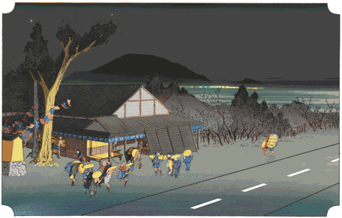 看不到車尾燈,只看到一條線!原作:歌川廣重《東海道五十三次》的石部