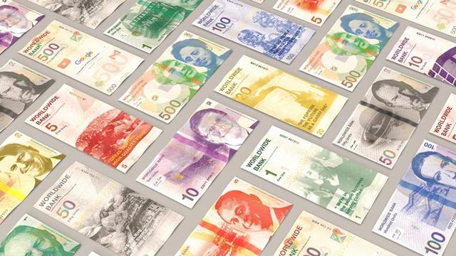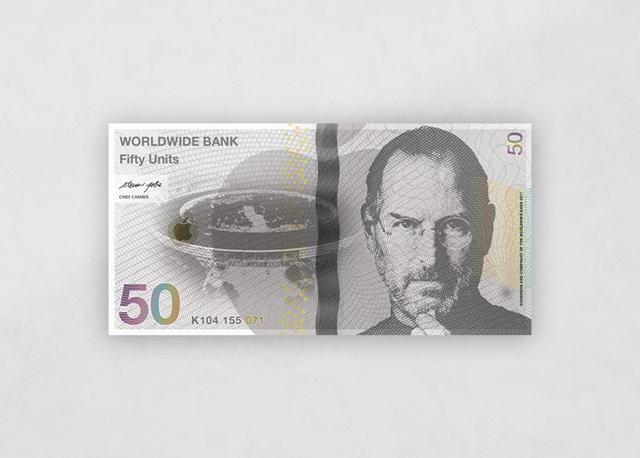 Dalloul 以歐元和英鎊為設計靈感,貨幣上有著各企業代表人物的肖像,有 Apple 代表:賈伯斯、微軟代表:比爾蓋茲和臉書代表:馬克祖克柏…鈔票上更印上企業 logo 和代表建築物,就像是蘋果要新落成的總部「Apple Park」就點綴在背景。