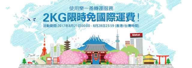 定期不定期舉辦大大小小優惠活動的知名日本網路購物平台「日本樂天市場」與同樣是日本在地的轉運服務團隊「樂一番轉運」合作,推出2KG限時免國際運費的優惠,只要單筆訂單滿日幣8,000元(約新台幣2,200元),單次發貨最高可省日幣3,300元(約新台幣910元),最多還可享三次,加起來就是近萬日圓的優惠啊!