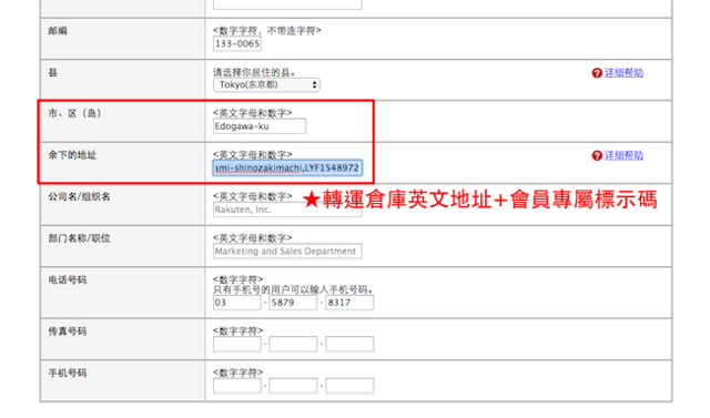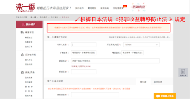 在填寫地址的小提醒是要填入英文的地址,在樂一番的頁面中可以找到英文的翻譯。