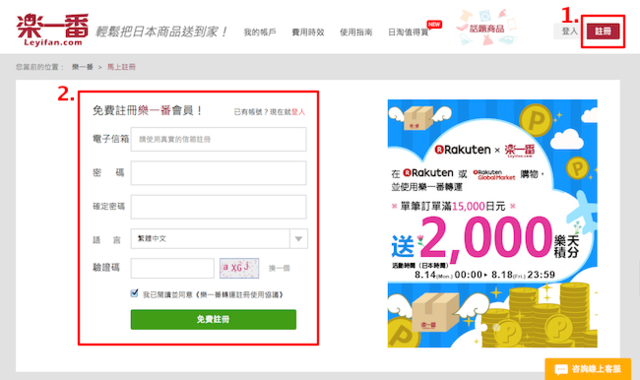 「日本樂天市場 X 樂一番轉運」活動頁面