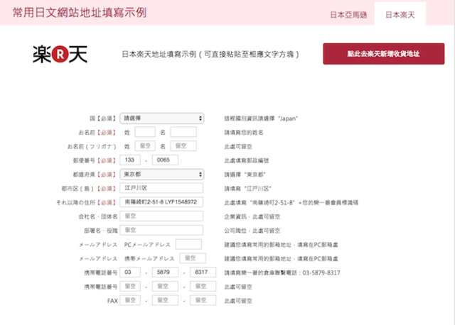 頁面上也貼心的示範常用日文網站地址該如何填寫。
