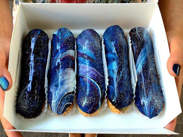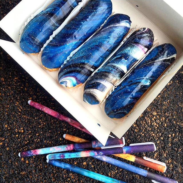 就像許多糕點店的實驗,如銀河婚禮蛋糕、星座餅乾等,位於烏克蘭基輔的 Musse Confectionery 推出一款外星閃電泡芙,藍色、紫色和粉紅色的糖霜如漩渦般纏繞在一起,加上細細糖粉點綴,從外觀看來,彷彿是直接把銀河濃縮成甜點,每嘗一口,就能感受到它迷人的奧妙口感。