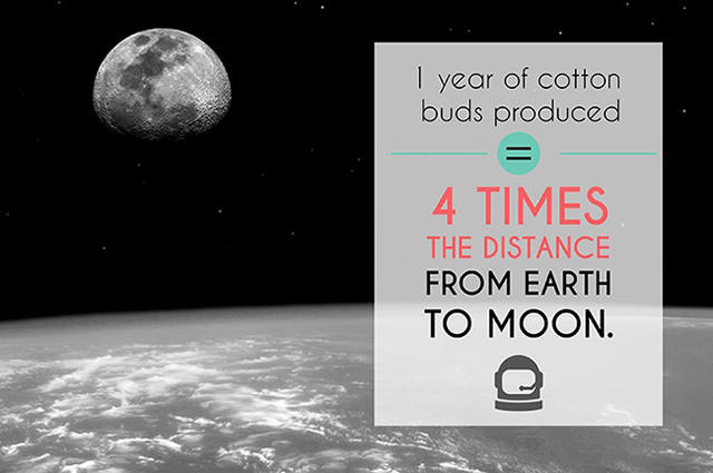 據統計,棉花棒一年的生產量高達 220 億支,將這數字化為距離的話,就是 4 倍地球至月球的長度、就是 400 萬座帝國大廈那麼高。