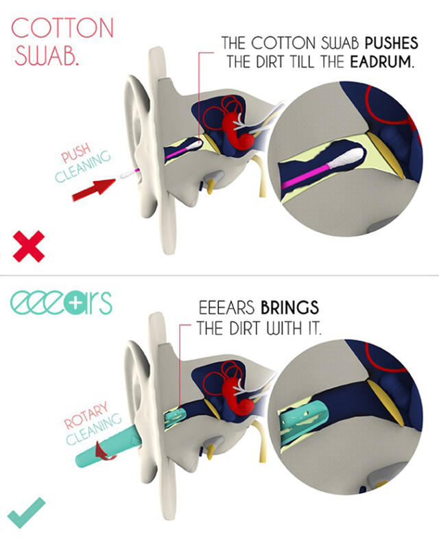 它除了輕便好攜、能減少垃圾量外,另一個最大優點,就是旋轉式的除垢,不僅清潔力更勝棉花棒,還能可降低對耳朵鼓膜的傷害。