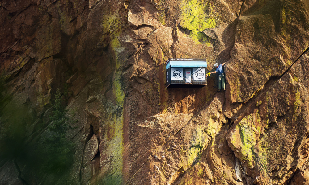 世界上最遠的距離,就是我明明知道你有開店,我到了時店卻關了!許多時間限定的快閃店,就是利用飢餓行銷的手法,在短時間內刺激買氣。而由37.5 Technology所推出的快閃店Cliffside Shop,不只時間限定,地點也非常限定,把店開在科羅拉多州小鎮Boulder旁、300英呎(約91.4公尺)高的山崖峭壁上,這麼刁鑽的位置,如果身手不夠好的話,那可真是買不到啊!