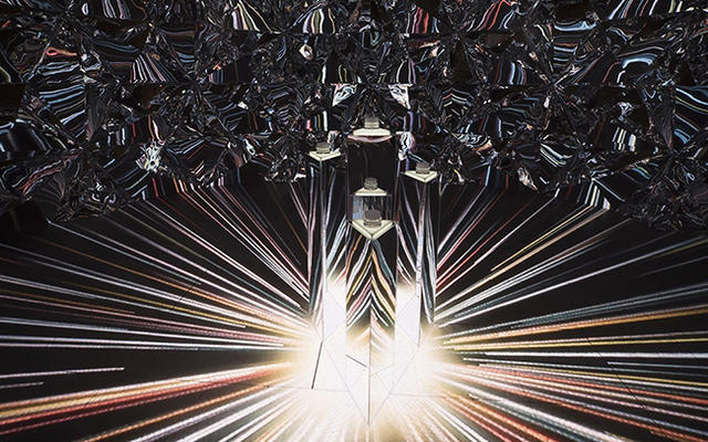 曾與 Nike、Puma 合作的香港藝術家 Chris Cheung,擅長用多媒體呈現豐富的聲光效果,以其為首的設計團隊 XEX 最近幫護膚品牌 Dr.Jart+ 創造一個閃亮亮的裝置藝術「Prismverse」。它彷彿一顆大鑽石,觀眾走進裡頭,就會受到周遭稜鏡的光線反射閃瞎!(誤)