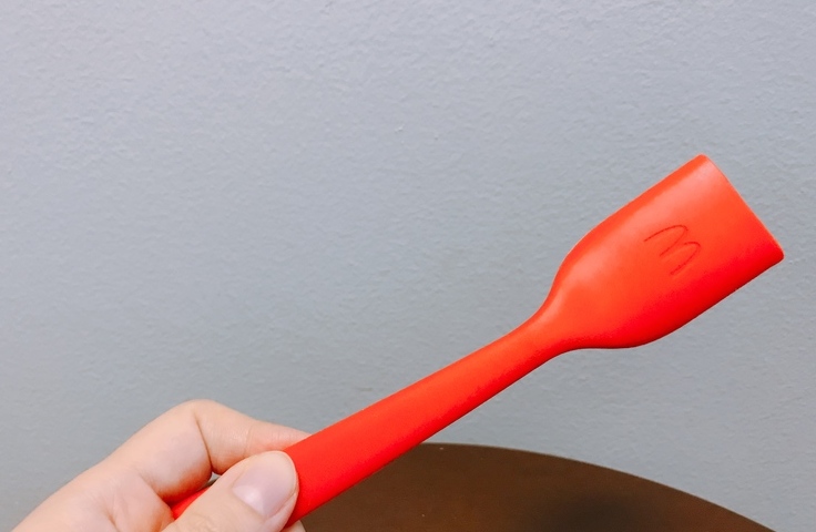 美國麥當勞在2017年5月推出了薯條專用叉套FRORK,將三根薯條放入紅色矽膠叉套中,就可以舀起從漢堡中漏出來的沾醬或是餡料,而不會弄髒手。雖然用手把薯條放到叉套,好像手指頭也會一起變得油膩膩,實在會讓人覺得多此一舉,但......日本麥當勞還是毅然決然的引入日本,在今年10月20日向大家推出這款薯條專用叉套。