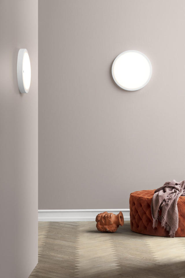 有著柔和光線的 Chara Flush Mount,現代感十足的圓框上頭罩著聚碳酸酯材質的燈罩,共有好幾種顏色可以選擇,專門在夜晚時,為大家在走廊、玄關入口或是洗衣間,點亮一盞溫柔的燈。