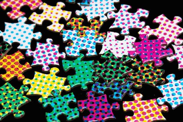 其實 CMYK 色彩拼圖與一般傳統的拼圖沒有任何不同,而且在少了線條與圖像的干擾下,更可以依照色彩邏輯來拼組,厲害的設計師甚至可以不用參考原圖,憑藉腦中的色域概念便能一步步建構出完整的拼圖。