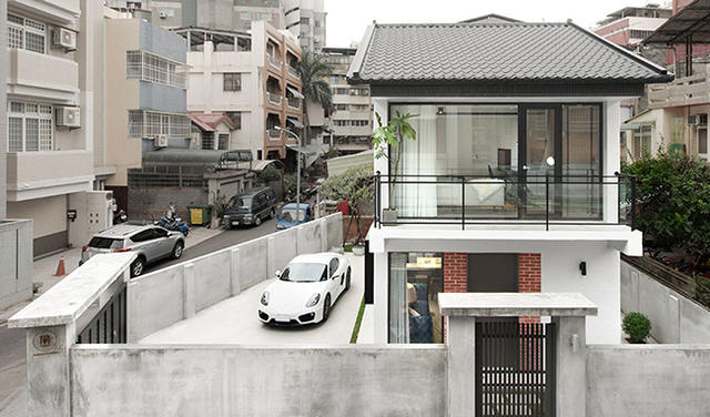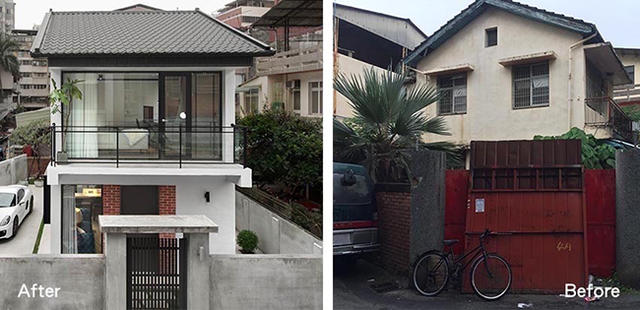 被設計總監形容成廢墟狀態,想必原始狀況一定相當糟糕,維持建築原始結構不動,開始進行修復計畫,庭院不另外種植過多樹木,方便屋主來訪時停車需求。外牆透過防水施工加上石頭漆,重新整修成潔淨明亮樣貌,再於門口重新砌上講究工法的「清水磚」,從外觀看來相當具有特色。屋頂則採用仿製傳統造型的瓦片設計,更好保養的同時也再再突顯傳統建築美學。