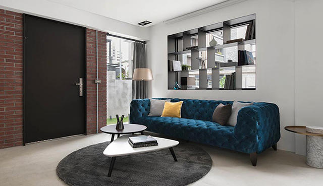 以舒適低彩度的黑、灰、白為主色調,並透過松木合板、復古紅磚、白色磁磚、黑色鐵件、灰色樂土,呈現多種相同色系的微妙變化,簡單修飾空間主體,加上色彩較為濃郁的家具點綴,讓整體空間感受舒適卻又不過分張揚,回歸家的中心主軸。