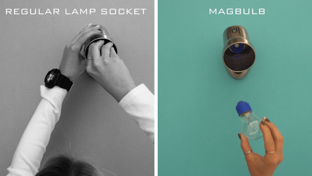 紐約設計團隊研發出世界第一款磁鐵燈座 Magbulb,能夠符合常見的 E26 與 E27 規格的燈頭。使用方法很簡單,只要先在燈座和燈泡上安裝好 Magbulb 的裝置,下次一「吸」就能點燈,比傳統旋轉個老半天的方式,省下五到十倍的時間,對於瑣事繁多的人來說,超級便利的啦~