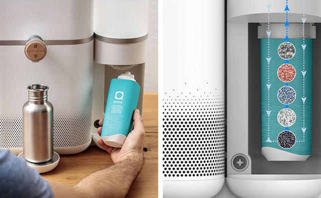 如上圖右所示,Mitte 與一般濾水器最大的不同,就在於機器右方有專利申請中、可自選所需礦物質的可替換式「濾筒」,它除了能過濾外,還會將你需要的礦物質添加進過濾後的潔淨水中。