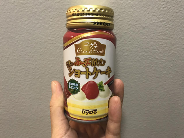 從瓶身來看,Rich Grand Time Shake and Drink Sweet Shortcake(沒錯,這是官方名稱)像是一個醬料罐頭,感覺一打開裡頭裝的是沙茶醬、豆瓣醬那類的內容物,罐身上還標註飲用前請先搖晃 5 次的字樣,因為這款飲料的成分有俗稱吉利丁的明膠,所以搖越多下,會更有食物的濃稠口感。