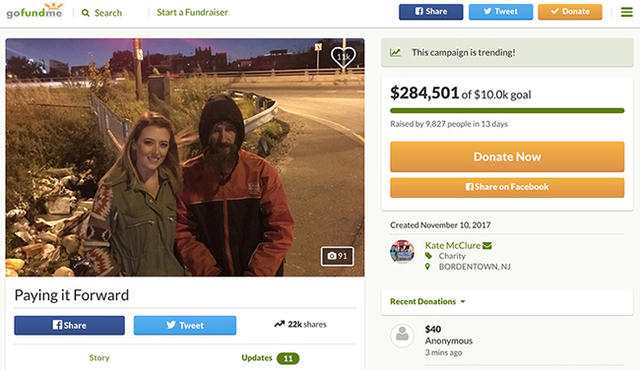 眼看冬天越來越冷,Kate 不忍想像 Johnny 在低溫裡挨餓受凍,她決定在 GoFundMe 發起集資、和全世界分享這個陌生人無私相救的善舉,希望能藉此為 Johnny 籌到一台車和一筆短期租屋費用,好讓他安心找工作度過寒冬。