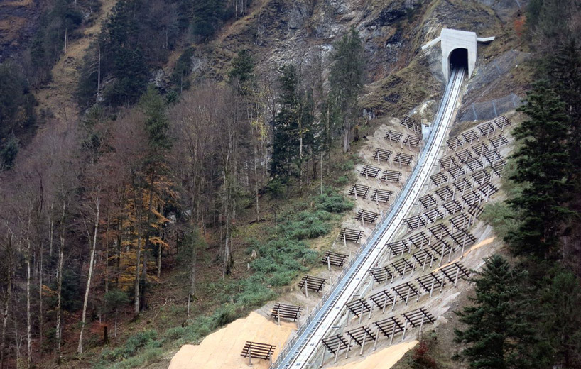 最近號稱全世界最陡的纜車Stoos Bahn Tram在瑞士正式啟用,可說是近代設計工程史的一大勝利。整條纜車全長1738公尺,共計爬升743公尺,爬坡斜度高達110%,並以最高每秒10公尺的速度,連結了瑞士中部城市Schywz和山中小鎮 Stoos。
