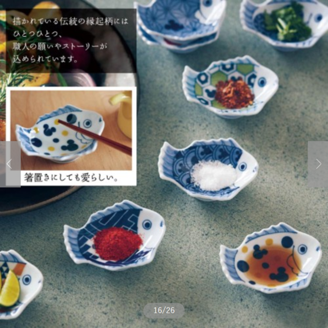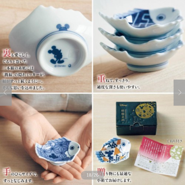 最近日本的有田燒品牌「梶謙製磁社」和迪士尼合作,推出鯛魚的招福豆皿系列,鯛魚身形的盤身,盤內花紋卻藏有米奇圖案,真有點要找找米奇在哪裡的意味啊~