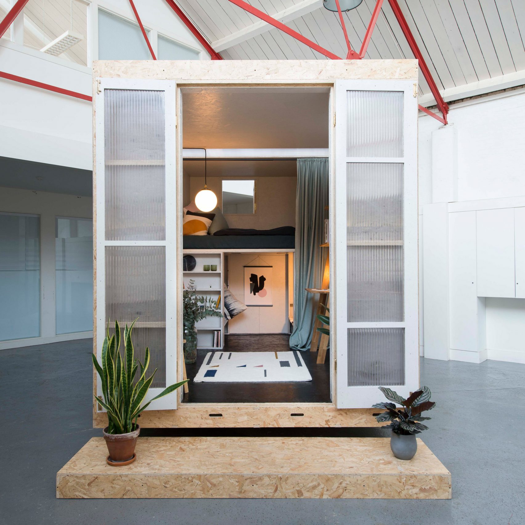 由房屋管理公司 Lowe Guardians 所推出的 The SHED Project,看起來有點像是「屋中屋」的概念,也就是在倫敦閒置建築中,再蓋個小房間,一方面房東不用擔心房屋空著空著就被人侵佔、破壞,而預算不高的年輕人也可以租到非常便宜的住所,可說是雙贏的概念。他們找來同在倫敦的設計公司Studio Bark操刀,打造出房間的模組,只要有槌子和鑽孔機,一天內就能組裝完成,或是拆卸搬到別處重新組裝,非常方便。(The SHED Project)
