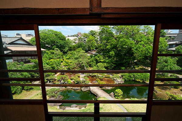 在這棟古色古香的日本建築中,室內隔間幾乎都是以紙拉門或隔扇所構成,因此過去曾將美術品展示於壁龕,讓隔扇本身作為「障壁畫」而繪上圖畫。本館將原本描繪圖畫的隔扇,裱糊上可展示現代美術的日式配色壁紙,作為展示牆使用,與其中展出的當代藝術作品相映成趣。