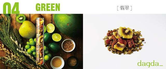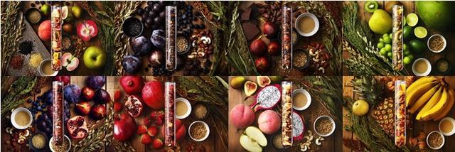 dagda 一共包含八種口味,每種口味都以一種顏色為主題,裝在試管裡面,顏色層次更為明顯,看起來更為時尚。像是以「愛情」為主題的紅色早餐,包含了 β 胡蘿蔔素和槲皮素,以及強調美白的保養產品中,不可或缺的鞣花酸,吃了之後,整個人就像是被愛情滋潤了一樣地紅潤動人。