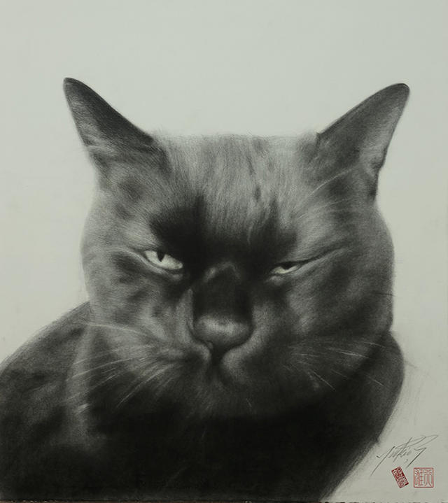 另一方面,藝術家描繪的對象,除了生活中人們所飼養的以外,有許多的部分來自於他觀察環境周遭的貓,如公園等處,因此我們也可以在他的作品中看到不同生長環境下貓的神情。