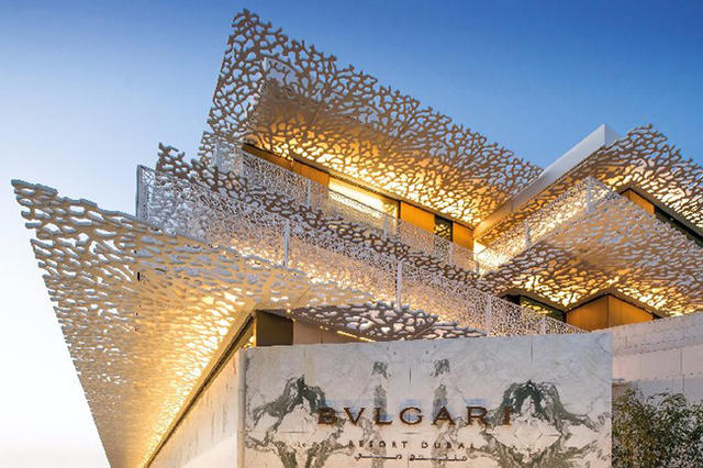 自 1884 年寶格麗在羅馬創立,從珠寶店、皮具、銀器到香水等項目,高端奢侈品的行列中總少不了它的身影,此次再度與義大利最知名建築事務所之一 Antonio Citterio Patricia Viel 合作建築和室內設計,也同樣讓人驚艷於其對工藝美學的講究。不同於米蘭寶格麗的簡約、峇里島的浪漫、倫敦的經典與北京的優雅,杜拜寶格麗度假村宛如海上的綠洲,以宛如珊瑚礁的造型,體現中東特有的瑰麗美學。