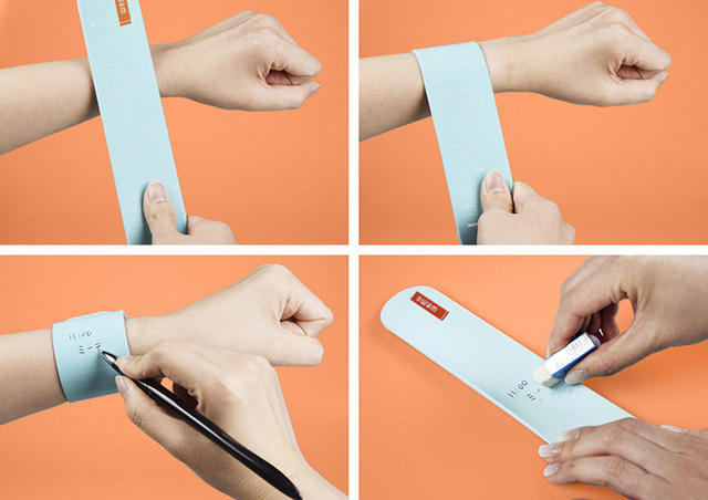 WEMO 的靈感來自於醫院中的護士,由於他們的事務繁雜到時常需要在手上「寫小抄」,因此讓設計團隊想到何不在手上作個光明正大的「大抄」!WEMO 是以矽膠為材質的手帶,可用馬克筆無限次塗寫,如果需要修改,可以用手指頭或是橡皮擦擦掉,但神奇的是,寫上去的字跡不會被水洗掉,因此即使戴著 WEMO 洗手或是在水中工作,都不成問題,而達到真正的「隨時、隨地、可書寫、可記憶」。