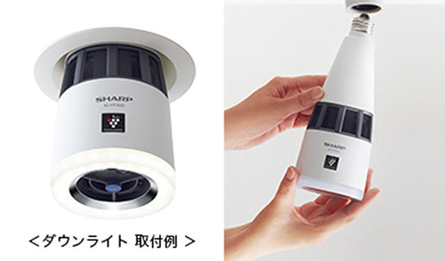 SHARP 除菌離子消臭 LED 感應燈適用 E26 燈座,顏色為一般 LED 白光,適用廁所的 IG-KTA20 作用功能約 0.5 坪,也有適合安裝在玄關,作用功能約 1 坪的型號。目前僅日本販售,價格約 NT$ 4,000 元。