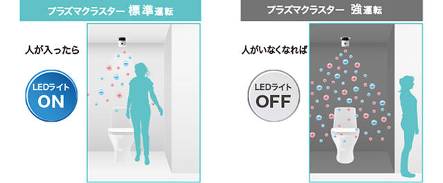 你相信光換燈具就能替廁所除臭嗎?SHARP 利用獨家的「自動除菌離子」(Plasmacluster)技術,持續開發各種創新的空氣清淨產品。自動除菌離子功能是在空氣中釋放正、負離子,與浮游黴菌等異味粒子作用,將異味轉化為水分子重新排出,達到除臭效果。