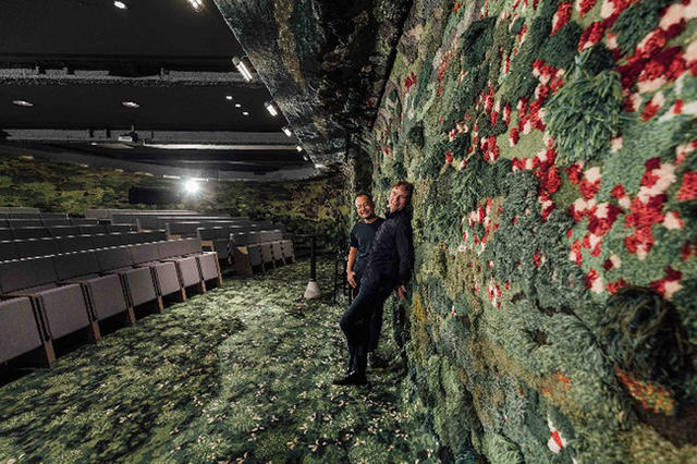 以台灣獨特山景為靈感,一點一滴,交織成如今的壯闊篇幅,此次整體設計由 Winy Maas 做概念發想,希望能讓人體會到被自然環抱的清新感受,恰巧與忠泰一貫對環境、建築和藝術的關注不謀而合。經過築內國際的深化和執行,巧妙搭配 Alexandra Kehayoglou 的獨特創作,為可容納 176 人的蛋型演講廳,手工編織出從地面、牆面綿延至天花板的植被地毯藝術。在高低層次錯落間,演繹層巒疊翠的豐富表情,散落其中的碎花更增添其繽紛詩意,搭配上隱約透露的天光,不難想像,在其中無論是聽演講、看電影,皆是一大享受!