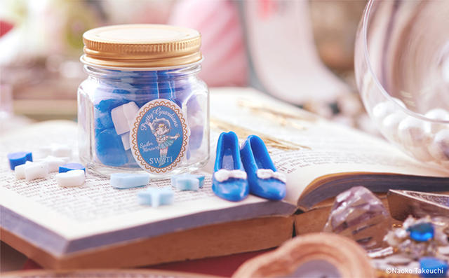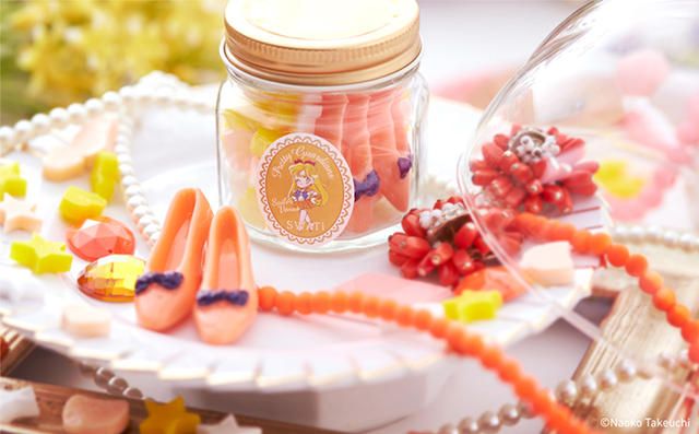 這些美少女戰士香氛蠟燭,造型全都是美少女戰士們平時作戰時所穿的高跟鞋,而且根據水手服的顏色不同,蠟燭的顏色和香氛也有所不同,像是水手月亮是月亮花,水手水星是鮮果海洋,水手火星是百合,水手木星是玫瑰,水手金星是桂花,所以和正港的金平糖比起來,無論是外觀、色澤還是香氣,絲毫都不遜色!就連瓶身上的插畫,也是由作者武內直子所創作的 Q 版人物,一整個就是瞄準死忠漫畫迷的荷包啊!