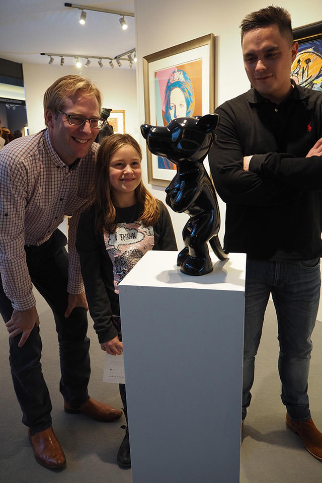 歐洲藏家投入地觀看作品〈狗眼看人低〉。圖 / 紅野畫廊提供。