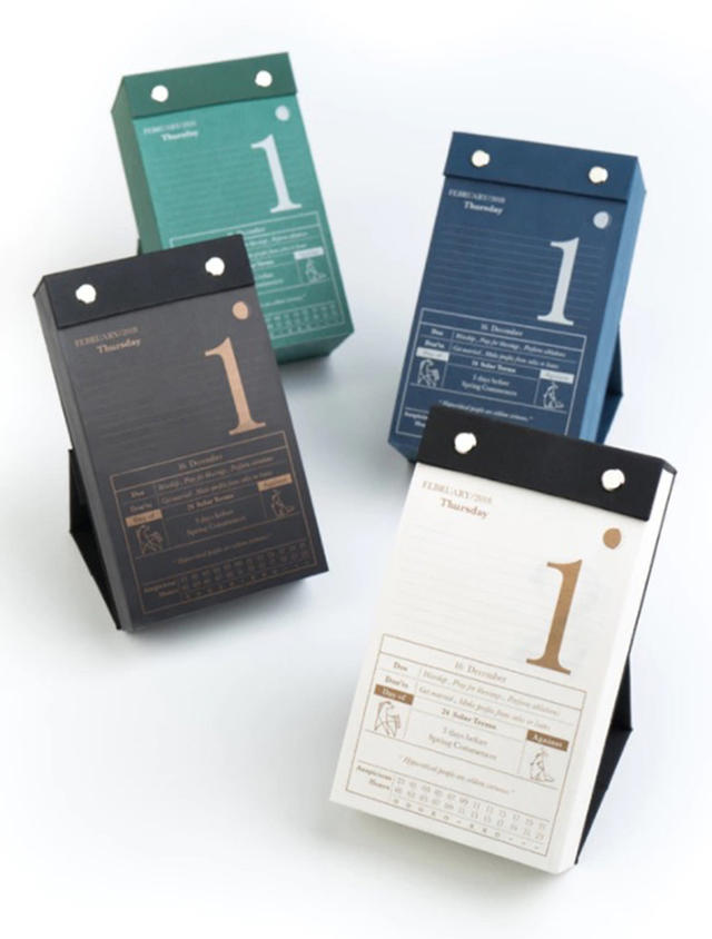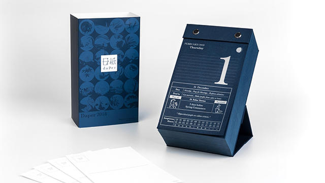 當傳統農民曆搖身一變、被賦予全新的設計之後,會是什麼樣子呢?一本 DAPER 長寬約為 17 x 10 公分,西元年、月、日與橫線記事區塊放在紙張上半部,下半部則有農曆日期與「宜」、「忌」事項,以及當日沖煞生肖、名言金句等,右上角還有個圓圈用來描繪月亮的陰晴圓缺。