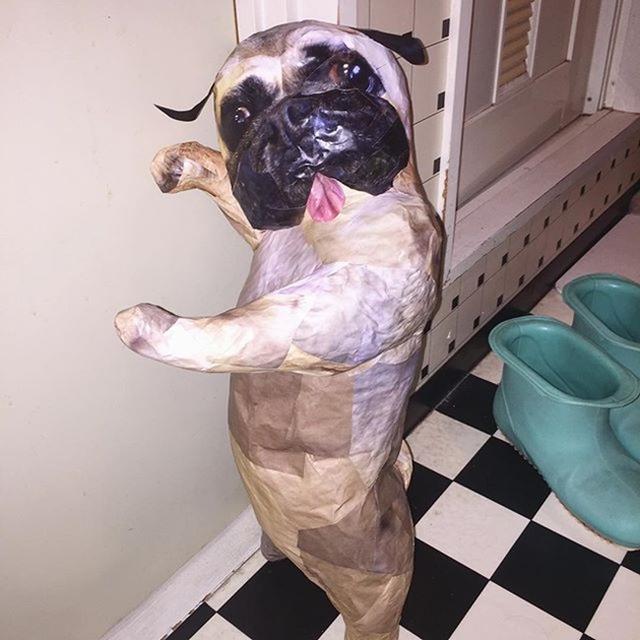 京都造形藝術大學畢業的 Tokiyoshi,用手機拍下鄰居飼養的狗,或是沿路散步遇到的狗兒,並且在經過飼主的同意下,從各個角度拍攝、印出大量的照片。接著就開始將一張張照片重新組裝、拼貼,成為一隻栩栩如生的拼貼狗雕塑,不僅為狗兒雕塑注入鮮活的生命力,也帶來一種超現實感。