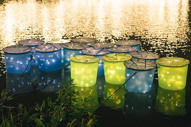 月津港燈節作品《月光光果實》,易冶設計創作。月光光果實,吸收月光與月津港水面蒸霞之氣孕育而成。在節氣之時,結實累累、藍綠相間、光滑隱透於表面,散發瑩火於夜間,隨月津水岸錯落而生,隨風搖擺,隨水浮動。
