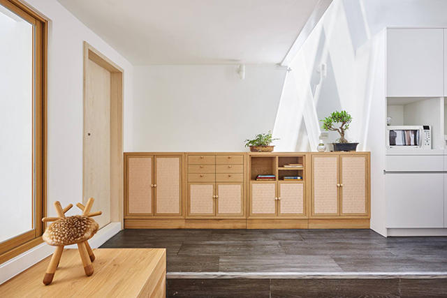 另外,原本是廚房的空間被改為戶外的小庭院,橡木座椅及臥榻可以讓來訪的賓客聊天談心,享受微風陣陣吹拂的舒爽。這個案例或許能提供老屋翻新的不同想法,畢竟高樓大廈不是都更唯一的解藥,有時候保留老舊概念,從中脫胎換骨,也不失為悠閒生活的嶄新選擇。